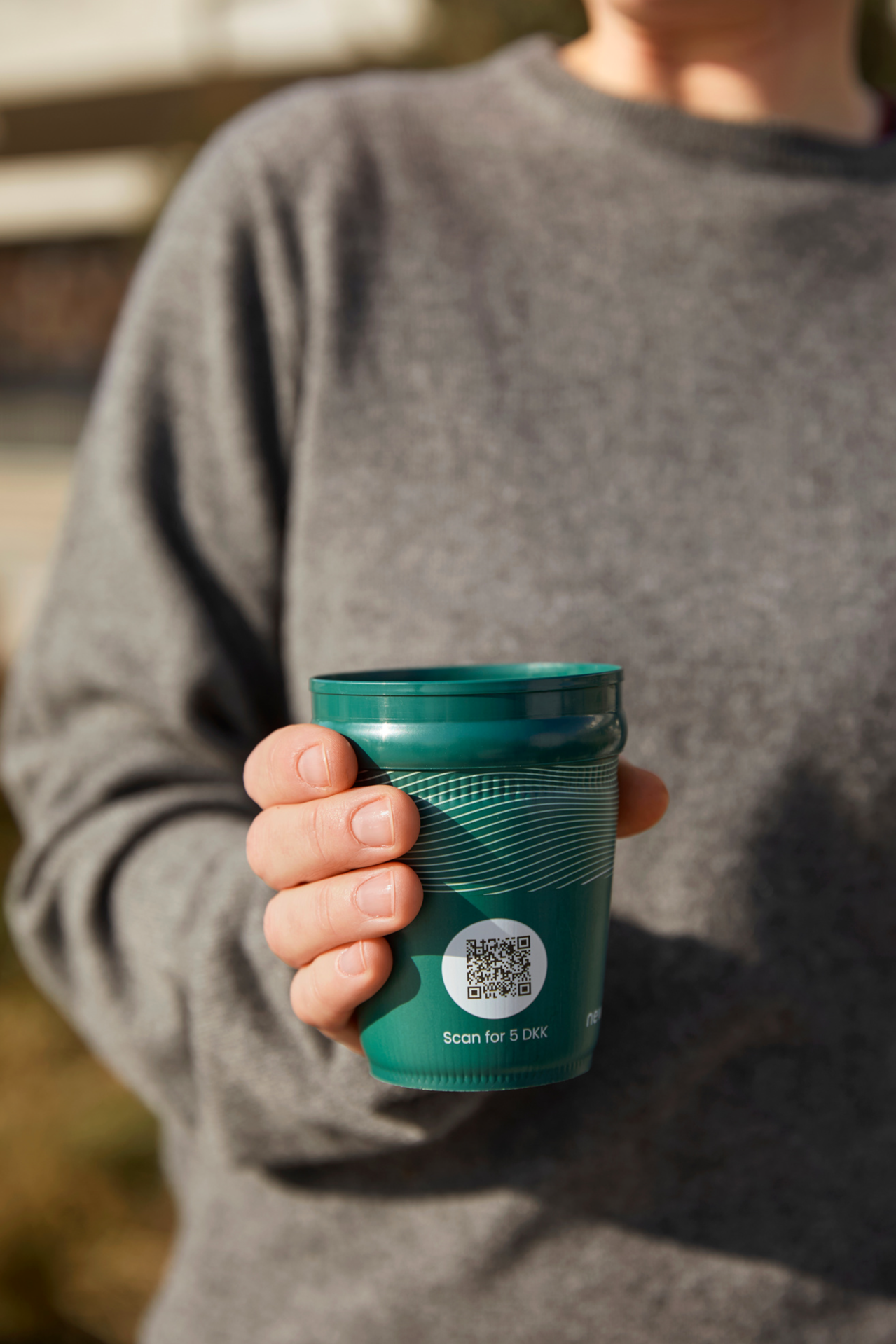 Du betaler fem kroner for koppen, når du køber din kaffe, juice eller anden drik, og når du er færdig, afleverer du den i en af byens 32 returautomater – og får pengene tilbage. Senere i fasen inkluderes også emballager til salater, sushi og lignende.